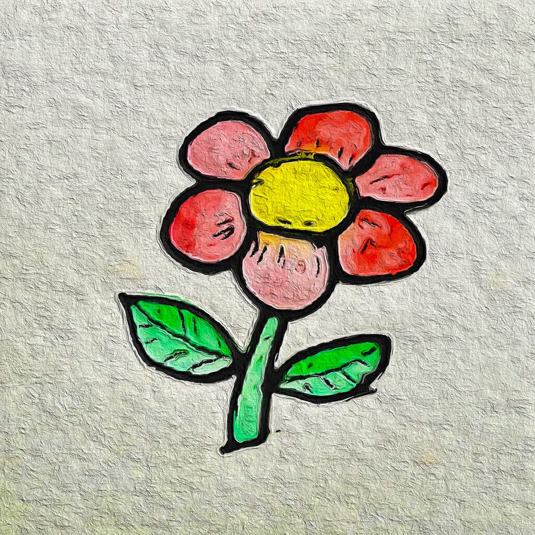 Following the idea of Flower(a) I drew another similar design in ink - again about 1 inch / 2 cm in size, hand coloured before photography. My iPhone photo app allowed me to extract the core image and remove the background.