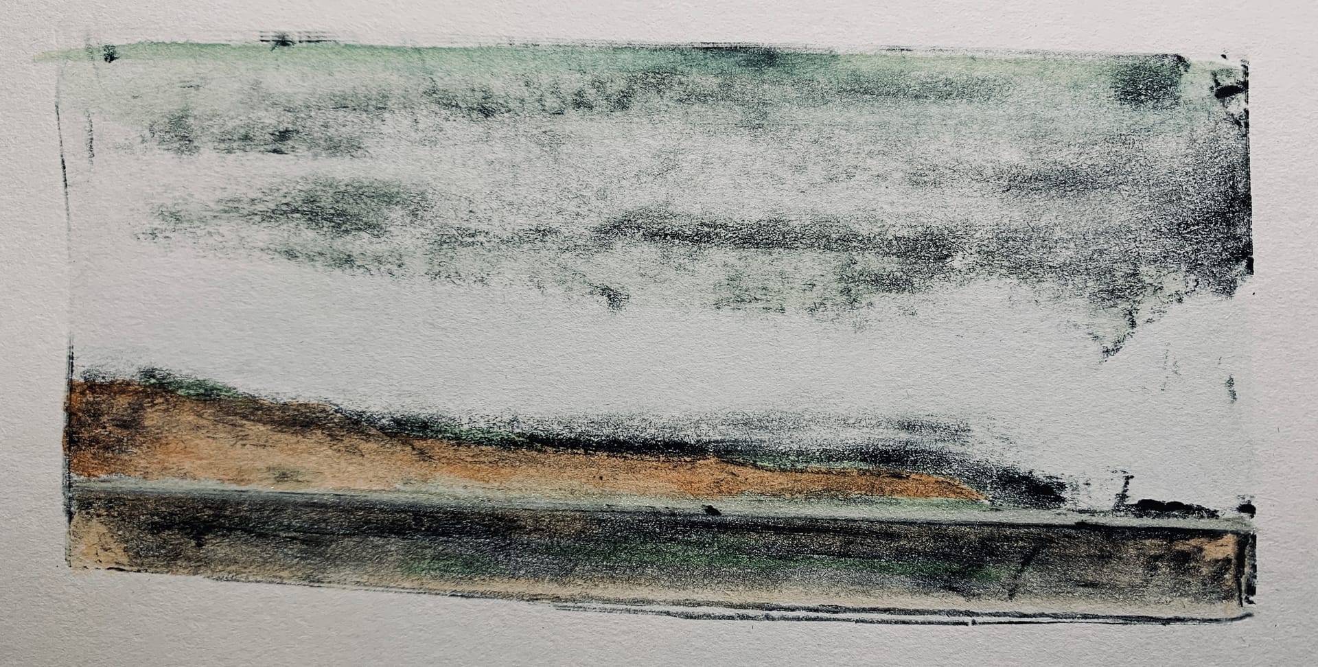A bit of an experiment trying to depict the countryside after rain has fallen. I did a number of prints, most of them unsatisfactory, and just showing the best one here.