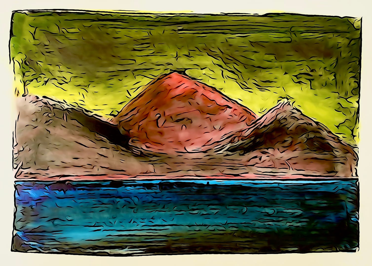 Not my best red mountain, though I liked it when I made it and it looks better in the flesh. This was a tetra pack etching then digitally enhanced. I did it for a charity auction.