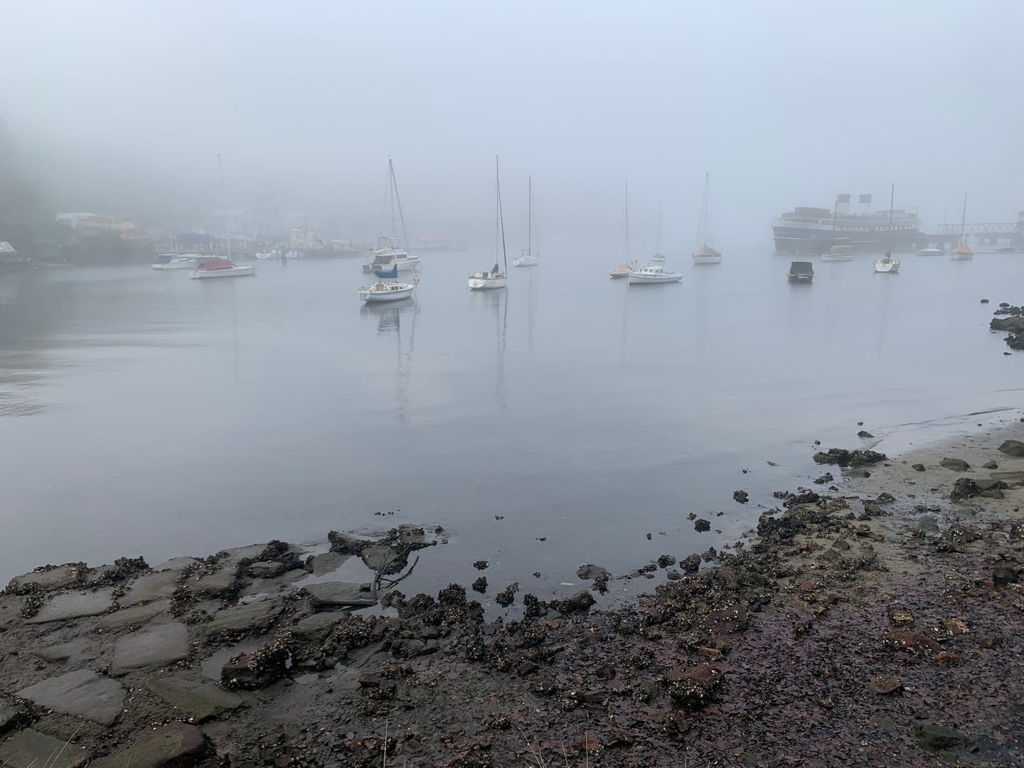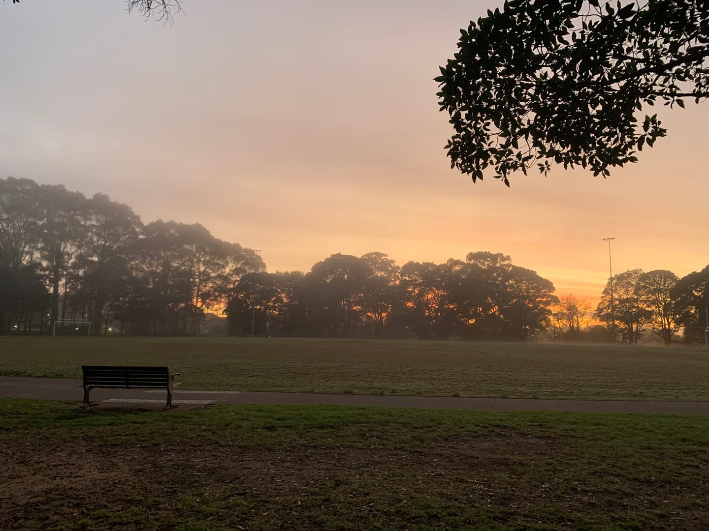 Sunrise at my local park at dawn. A quick snap while walking the dog. The fog was just rising but elsewhere around the harbour the fog lingered for a few hours.