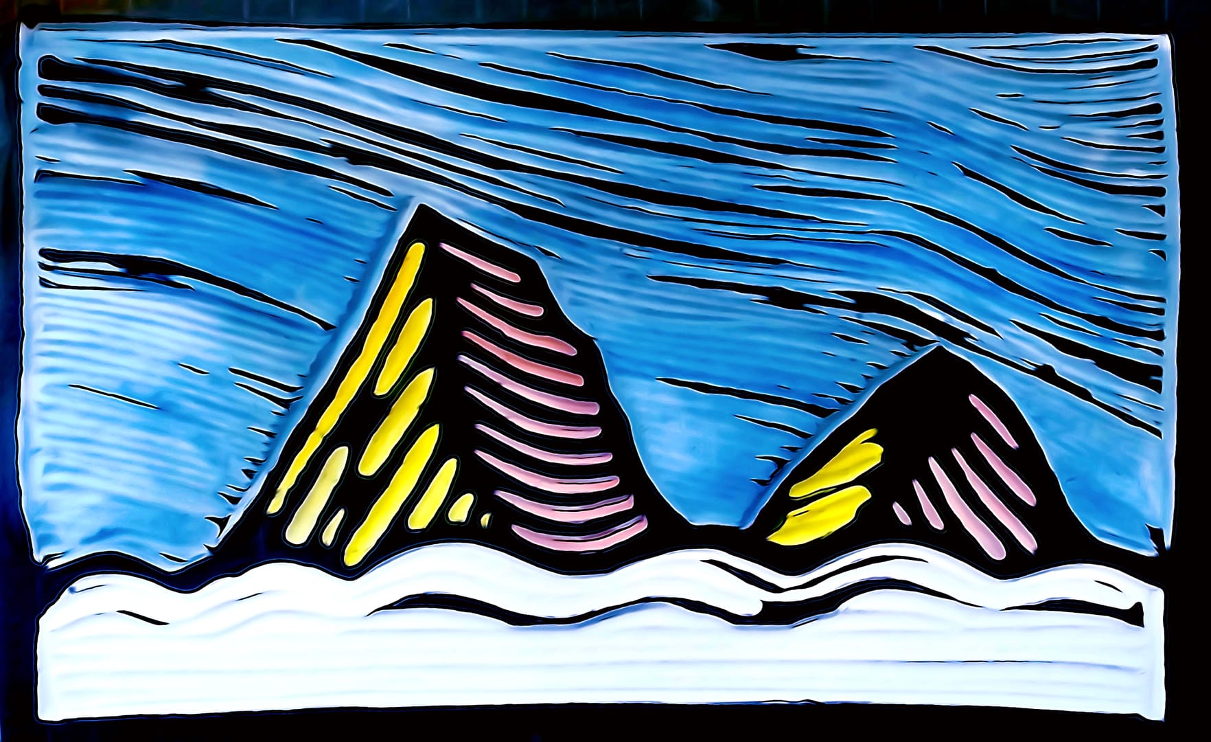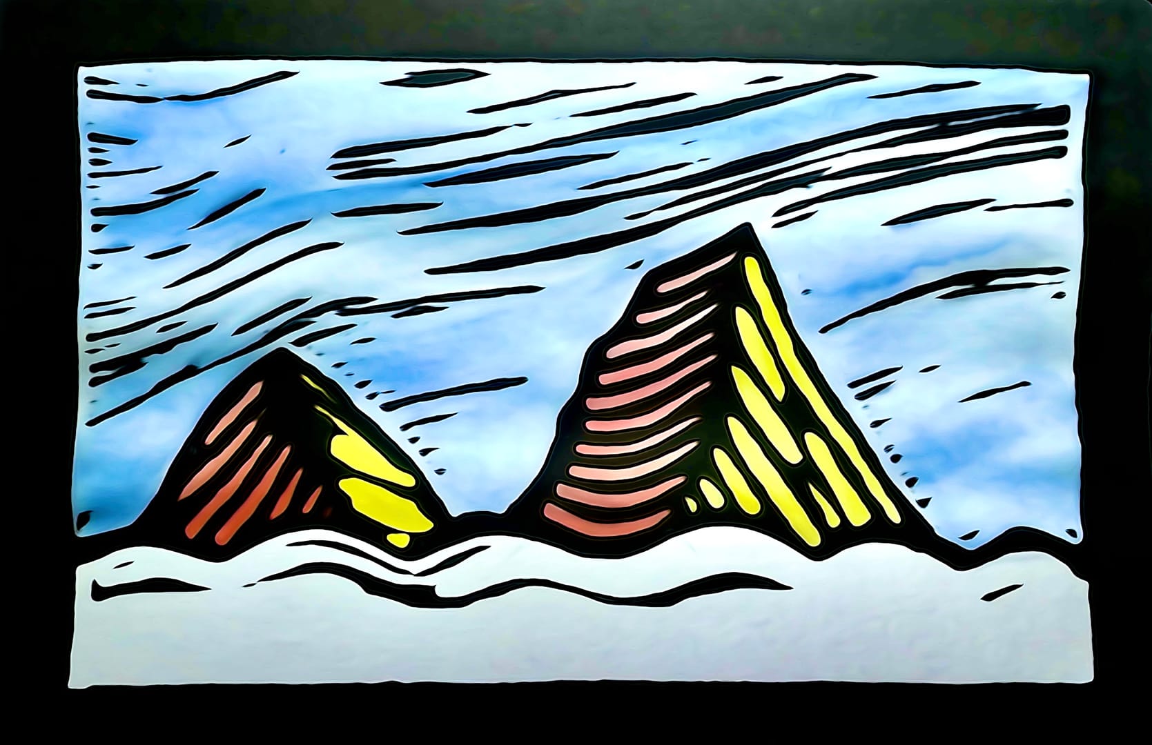 The first in a series of four. I did this as a sketch some time ago and didn’t finish it in class, so I completed it at home. All imaginary mountains of course.