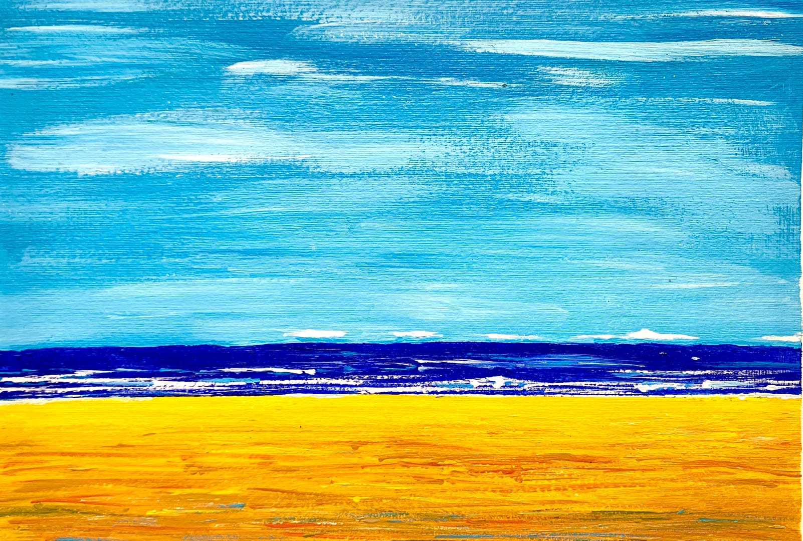 Another 1998 work rediscovered recently, this was trying to capture that first impression of going to the beach in Spring. No crowds, high clouds, the sun low enough to give the ocean a deeper shade of blue and the sea breeze generating a small surf. Perfect in my mind, harder to capture on paper, you can see what I was trying to achieve.